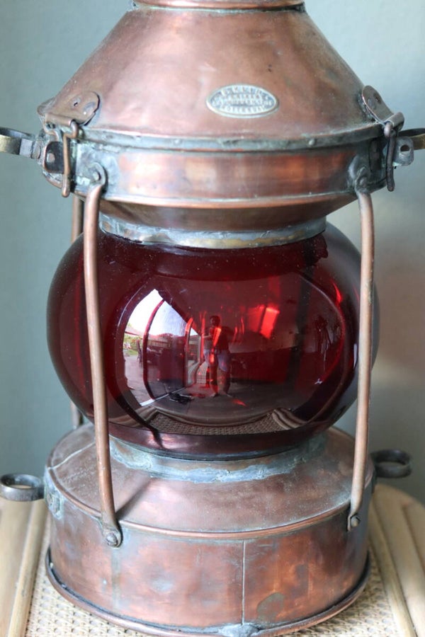 Antique ship lamp, N.M.V. lamp, by B. Klip from Rotterdam. Very special and old copy.